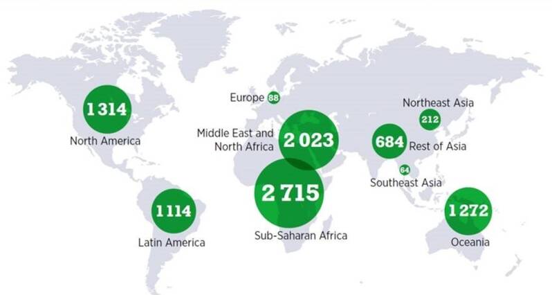 Global potential for the production of green hydrogen at less than USD 1.5/kg (exajoules): Africa 37%, Middle East 14%; North America 14%; Oceania 13%; Latin America 12%; Asia 9%; Europe 1%
