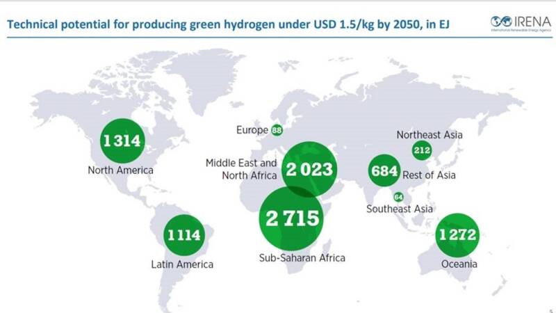 Africa, and its abundance of low-cost renewable power, is endowed with 33% of world technical potential for producing green hydrogen under USD 1.5/kg